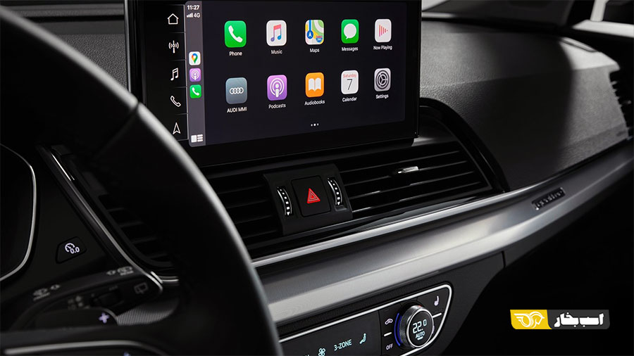 در کابین آئودی Q5 فیس لیفت شاهد استفاده از به روزترین فناوری شرکت هستیم. دو نمایشگر ۱۰٫۱ اینچی و ۱۲٫۳ اینچی به ترتیب برای پشت آمپر دیجیتالی و سیستم سرگرمی درنظر گرفته شده است. در سیستم سرگرمی MIB 3 آئودی Q5، قابلیت اپل کارپلی و اندروید اتو به صورت استاندارد تعبیه شده است.