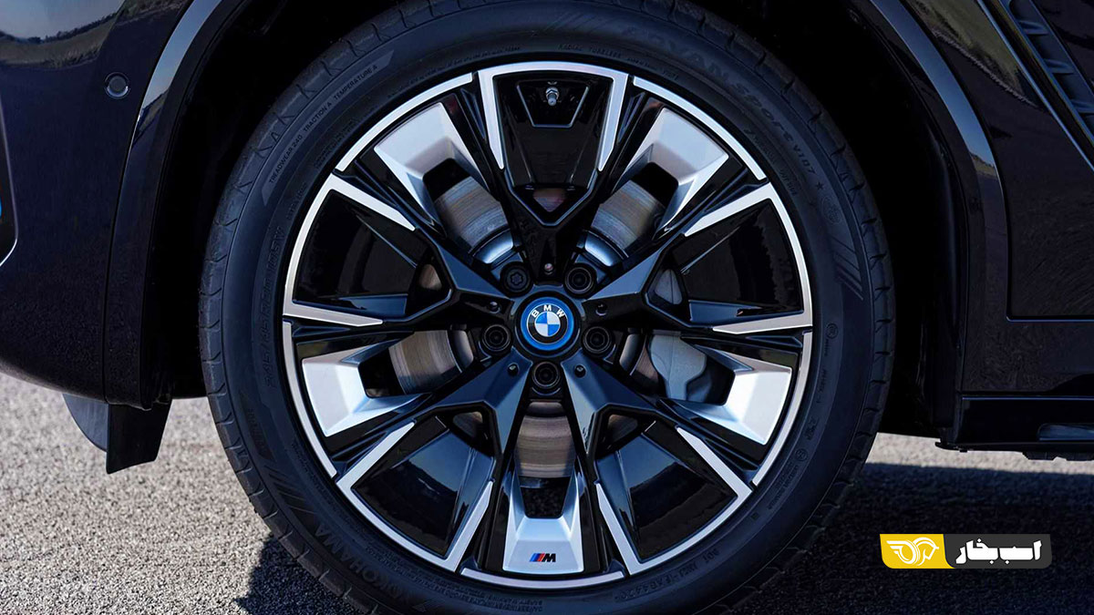 در ب ام و iX3 فیس لیفت رینگ های ۱۹ اینچی آلیاژی جدید را داریم و رینگ های مخصوص ۲۰ اینچی سری M بصورت آپشن قابل سفارش هستند که این رینگ های مخصوص طراحی خاصی در جهت بهبود آیرودینامیک بدنه دارند. در عقب گرافیک جدیدی را در طراحی ال ای دی های چراغ های عقب می بینیم و حاشیه ای مشکی رنگ برای این چراغ ها در نسخه فیس لیفت دیده می شود که در نسخه قبل نبود. در مقایسه با ب ام و X3 30i مرکز ثقل در ب ام و iX3 فیس لیفت به میزان ۷۴ میلی متر پایین تر است و تقسیم وزنی ۴۳ درصد در محور جلو و ۵۷ درصد در محور عقب را در این تمام برقی آلمانی داریم.