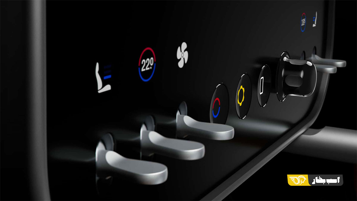 نمایشگر راننده، نمایشگر مرکزی و کنترلهای اختصاصی سرنشین عقب. صفحه نمایش راننده از دو پنل همپوشان تشکیل شده که با بریدگیهای خاص، عمق بصری سهبعدی ایجاد میکند؛ طراحیای که الهامگرفته از ابزارهای هوانوردی است.