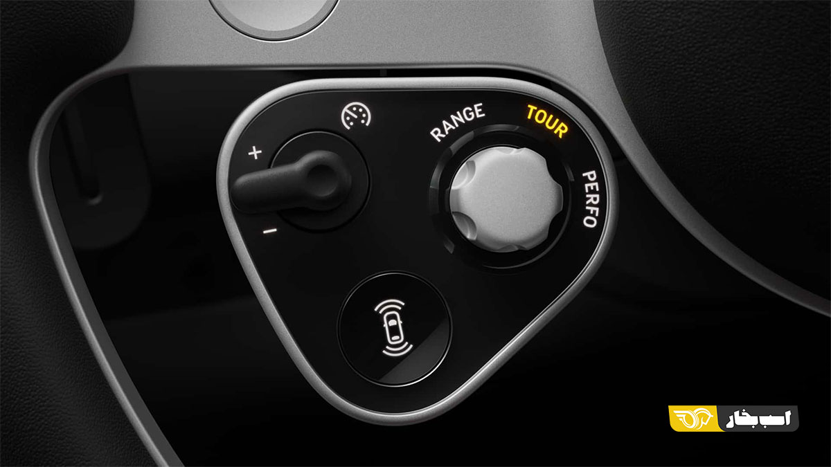 فرمان خودرو بازتفسیر مدرنی از فرمانهای سهشاخه چوبی Nardi دهه ۵۰ و ۶۰ است؛ با حلقهای باریک، پرههای آلومینیومی نمایان و دکمههای فیزیکی برای کنترل کروز کنترل، حالتهای رانندگی، تنظیمات کشش، برفپاککن و سیستم تعلیق. این تأکید بر دکمههای فیزیکی، برخلاف ترند لمسی بازار، کاملاً آگاهانه انجام شده است.
