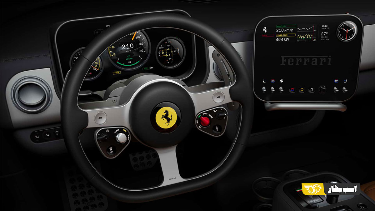 در همین راستا، فراری برای طراحی کابین سراغ LoveFrom رفت؛ استودیویی که توسط Sir Jony Ive، طراح اصلی آیفون، مکبوک و اپل واچ تأسیس شده است. نتیجه این همکاری، کابینی است که بیش از آنکه شبیه خودروهای اسپرت سنتی باشد، حس یک محصول دیجیتال پیشرفته و دقیق را منتقل میکند.