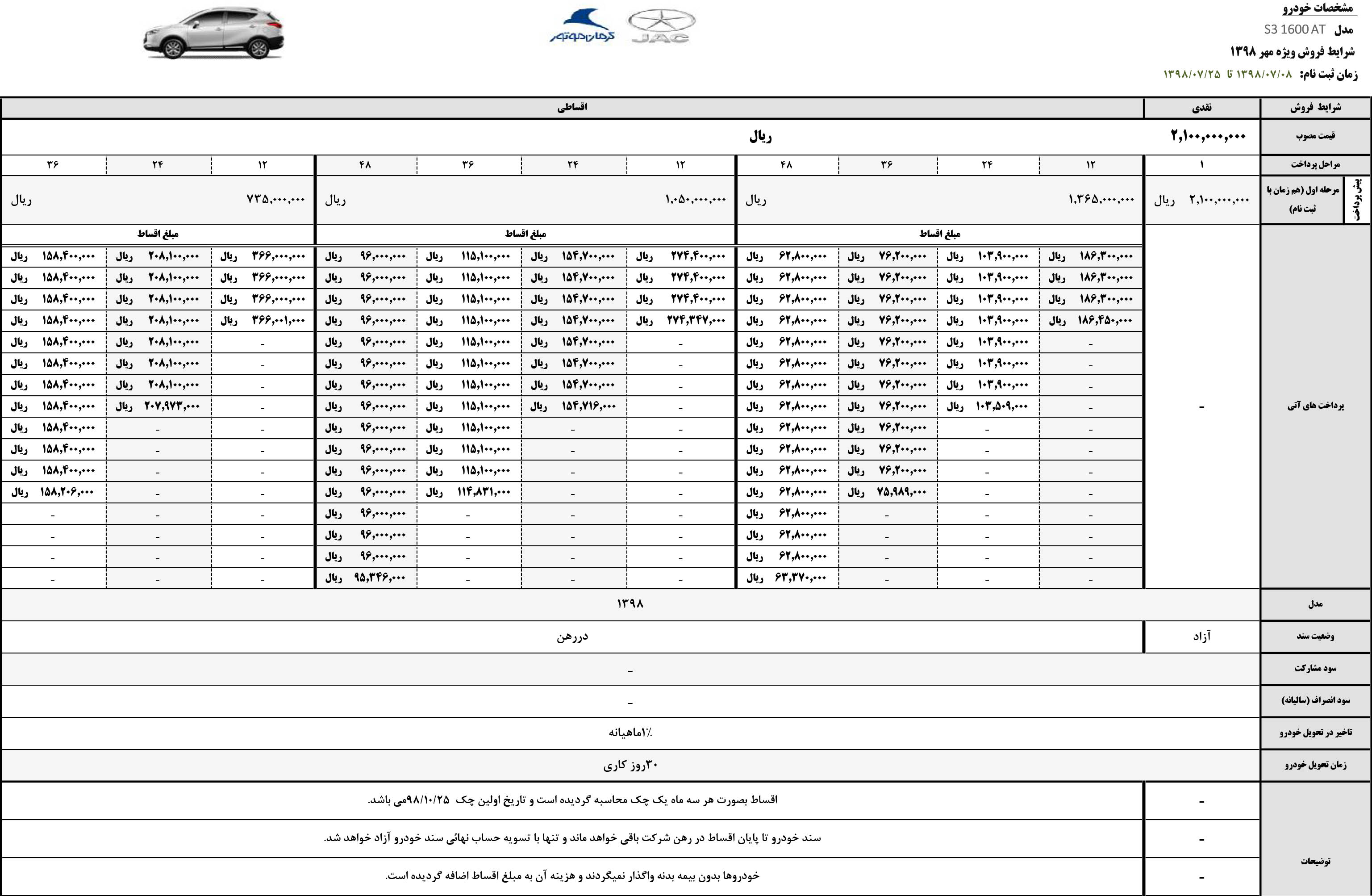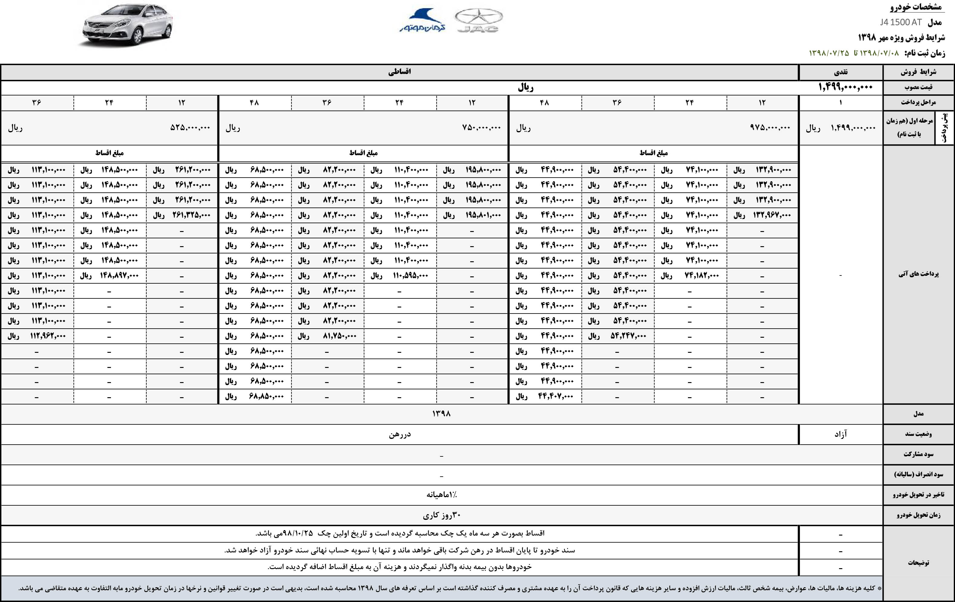 شرایط فروش نقد و اقساطی جک S3 و جک J4 – مهر ۹۸