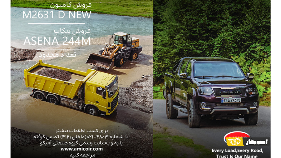 فروش محدود ۲ محصول آمیکو، کامیون M2631DNEW و پیکاپ آسنا آغاز شده است. دو محصولی که در سالهای اخیر جزء پرفروشهای بازار خودرو بودهاند. البته مرحله قیمت قطعی و شرایط فروش اعلام نشده است و علاقهمندان باید از شرکت اطلاعات موردنیاز را دریافت کنند.