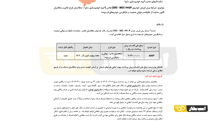 شرایط فروش سایپا 441P