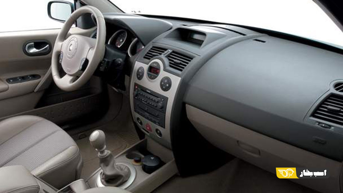 متریال به کار رفته درون داشبورد و اتاق مگان کیفیت مطلوبی داشته و همچنین از نظر فضای کابین بسیار جادار و بزرگ است. همین امر سبب شده تا مگان تبدیل به یک انتخاب مناسب برای خانوادههای ایرانی شود. از طرفی فضای صندوق عقب مانند کابین، فضایی جادار و کاربردی دارد اما متاسفانه کابین مگان عایق بندی متوسطی داشته و در دورهای بالا صدا به داخل کابین نفوذ میکند.