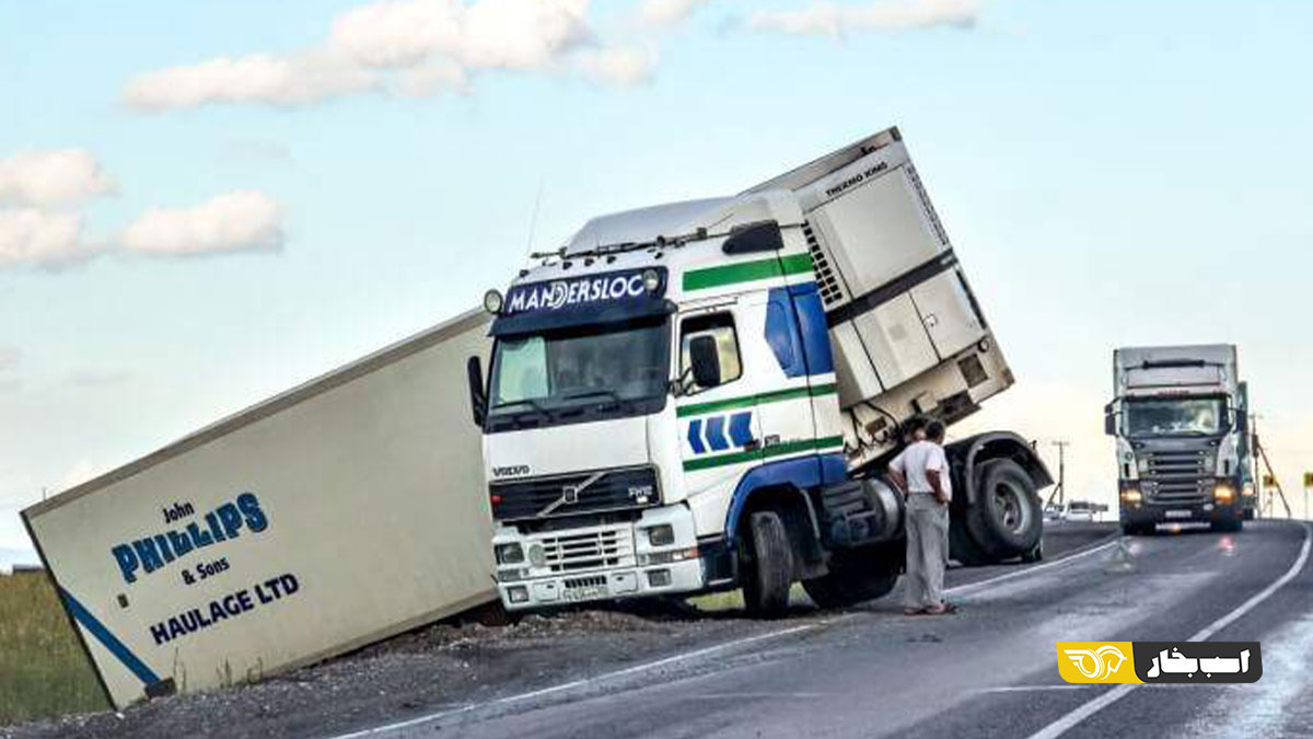 واژگونی تریلر و آسیب به بار که میتواند خسارت مالی هنگفتی به همراه داشته باشد.