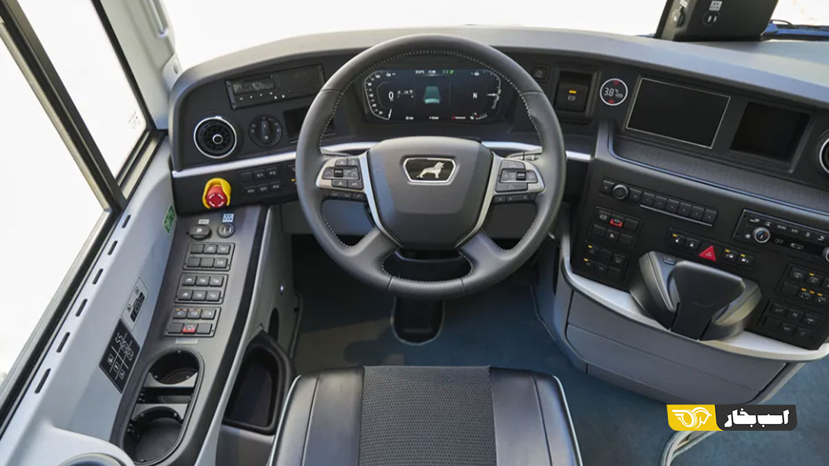 درون کابین این اتوبوس برقی در بخش راننده داشبوردی مشابه با نسخه دیگر حضور دارد. یک فرمان چهار شاخه مولتی فانکشن به همراه یک کلاستر تمام دیجیتال مقابل راننده تعبیه شده و خوشبختانه در دو طرف آن تمام کلیدهای کنترلی اتوبوس به صورت فیزیکی جای گذاری شدهاند.