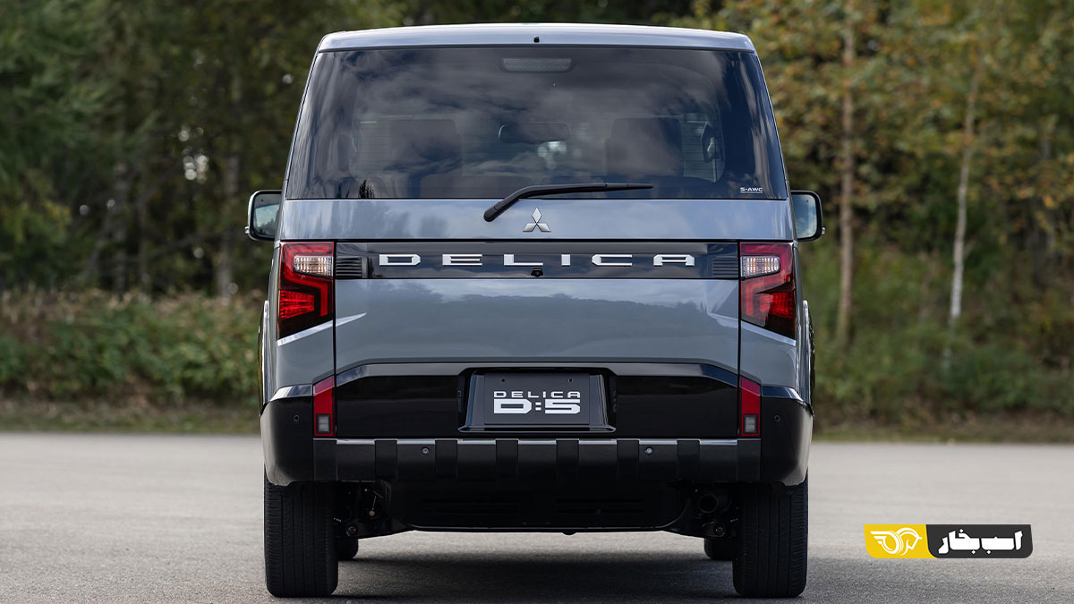 در نمای جانبی نیز گلگیرهای عضلانیتر شده و تزئینات مشکی روی رکابها جلب توجه میکنند. رینگهای آلیاژی ۱۸ اینچی جدید با طرح هفت پره و ترکیب دو رنگ، جلوه مدرنتری به کار اضافه کردهاند. در بخش عقب هم، سپر مجددا بروز شده با قاب صندوق عقب با حروف برجسته DELICA خبر از بهروزرسانی در عین پایداری ابعاد و فرم کلی (طول ۴۸۰۰ میلی متر و فاصله محوری ۲۸۵۰ میلی متر) میدهد.