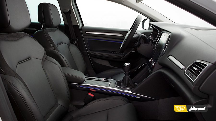 درون خودرو نیز مسیر جدید رنو در کم کردن کلیدهای دسترسی مشهود است. به راحتی می توان دید که دکمه ها یا کوچک شده اند یا حذف شده اند و وظیفه بیش تری بر روی دوش سیستم مولتی مدیای آن قرار گرفته است. این مورد را در تلیسمان دیده ایم. طراحی شبیه به برادر بزرگ تر است، اما سعی شده است ارزان تر باشد و مشخصاض در یک کلاس پایین تر از برادر نسبتاً لوکسش قرار دارد. اما واقعاً زیباست و از آن طرح های کهنه رنو فاصله گرفته است. ارگونومی به نظر خوب می رسد و فرمان هم به سبک و سیاق اسپرت های این روزها طراحی شده است.