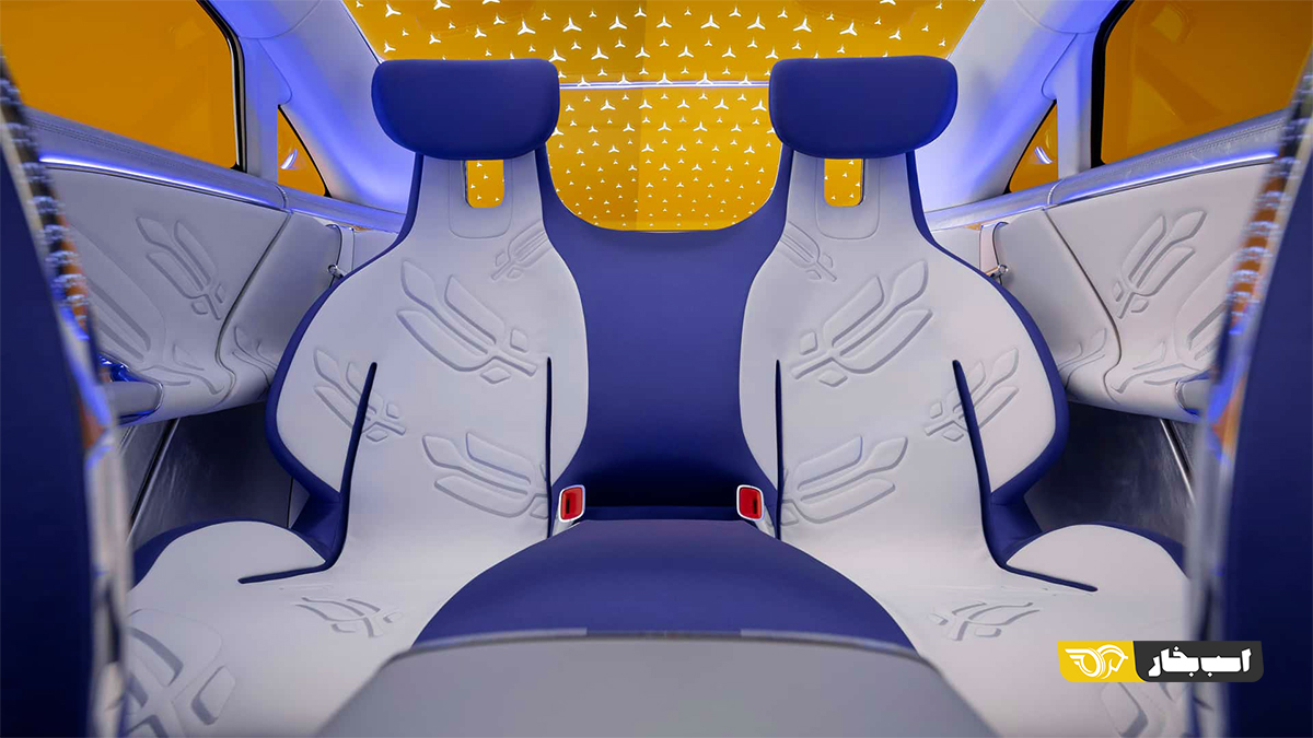 در نمای کناری، فاصله محوری به نسبت کشیده و طراحی ساده اما سیال و پویایی را شاهد هستیم. دستگیره ها نیز که به صورت مخفی شونده طراحی شده اند، بر سادگی طراحی این بخش افزوده اند و رینگ های ۲۱ اینچی شکل و شمایل خاص و آیرودینامیکی را ارائه می کنند. یکی دیگر از ویژگی های برجسته این کانسپت، شیب سقف، نمای عقب و سقف شیشه ای نورانی است که ستاره های سه پر مرسدس به صورت متحرک در آن دیده میشوند. در نمای عقب هم چراغ ها به صورت به هم پیوسته و در هماهنگی کامل با چراغ های جلوی خودرو شکل گرفته اند و گرافیک داخلی آن ها هم لوگوی بنز را نشان می دهد. نکته ای که دقیقاً بین علاقه مندان به مرسدس بنز بحث ایجاد کرده، این است که عده ای معتقدند برند با اصالتی همچون بنز نیازی به نشان دادن لوگوی خود در جایجای بدنه ندارد و عده ای هم این کار را جالب، متفاوت و نوآورانه می دانند. نظر شما چیست؟