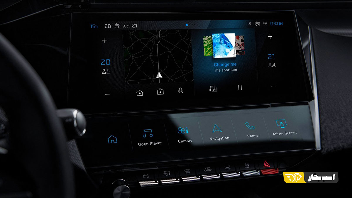 دکمه های سیستم تهویه به صورت لمسی طراحی شده که در کنار دکمه های دیگر برای دیگر تنظیمات طراحی شده است. البته هنوز دکمه هایی با عملکرد فیزیکی در قسمت پایین و وسط داریم، اما پژو هم مثل دیگر خودروسازان سعی کرده است بیش تر کنترلرها را در نمایشگر لمسی وسط داشته باشد تا کابین خلوت تری را داشته باشیم. در نسل جدید پژو ۳۰۸ امکانات جذابی مثل شارژر بی سیم گوشی هوشمند، نورپردازی داخلی با ۸ رنگ، ۱۰ اسپیکر فوکال و تنظیم برقی صندلی ها را می بینیم. ۳۰۸ جدید هرآن چه از یک هاچ بک نسبتاً پرمیوم بخواهید دارد و حتا سیستم تهویه ای در این خودرو دارید که ضمن نمایش کیفیت هوا، گازها و ذرات آلاینده را فیلتر می کند.